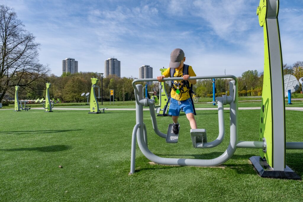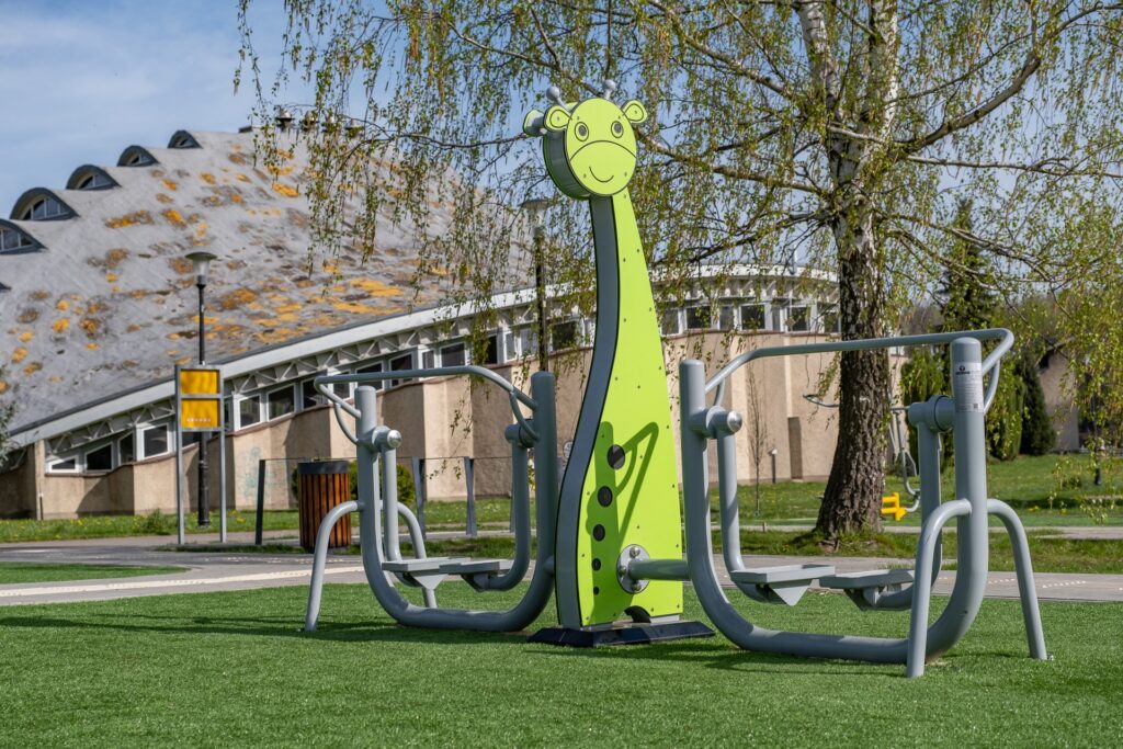 - świetnie wyposażoną siłownię plenerową – także w sprzęty dedykowane dzieciakom,